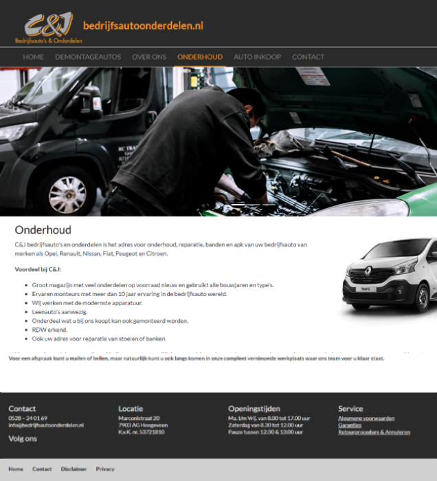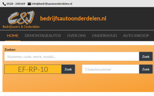 C&J uit Hoogeveen is de specialist in onderdelen voor bedrijfsauto’s van Renault, Opel, Fiat, Nissan en meer. Voor het zeer uitgebreide aanbod van onderdelen kunt u terecht bij onze online webshop. Voor meer informatie of vragen kunt ook contact opnemen.
