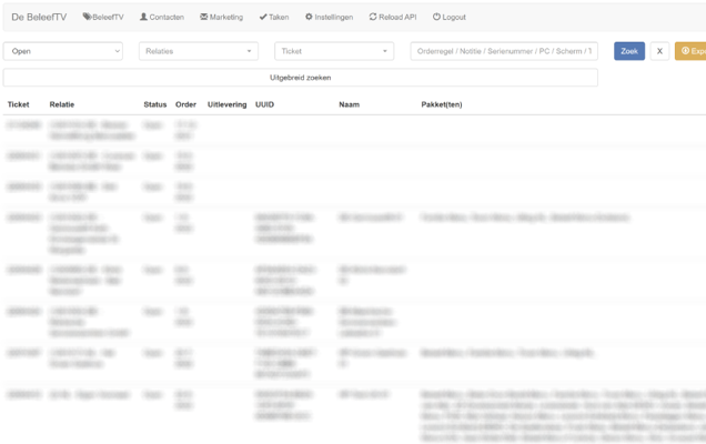 Realisatie CRM applicatie voor het registreren en beheren van de BeleefTV’s, de software licenties, de relaties en een API koppeling met SnelStart voor de facturatie.